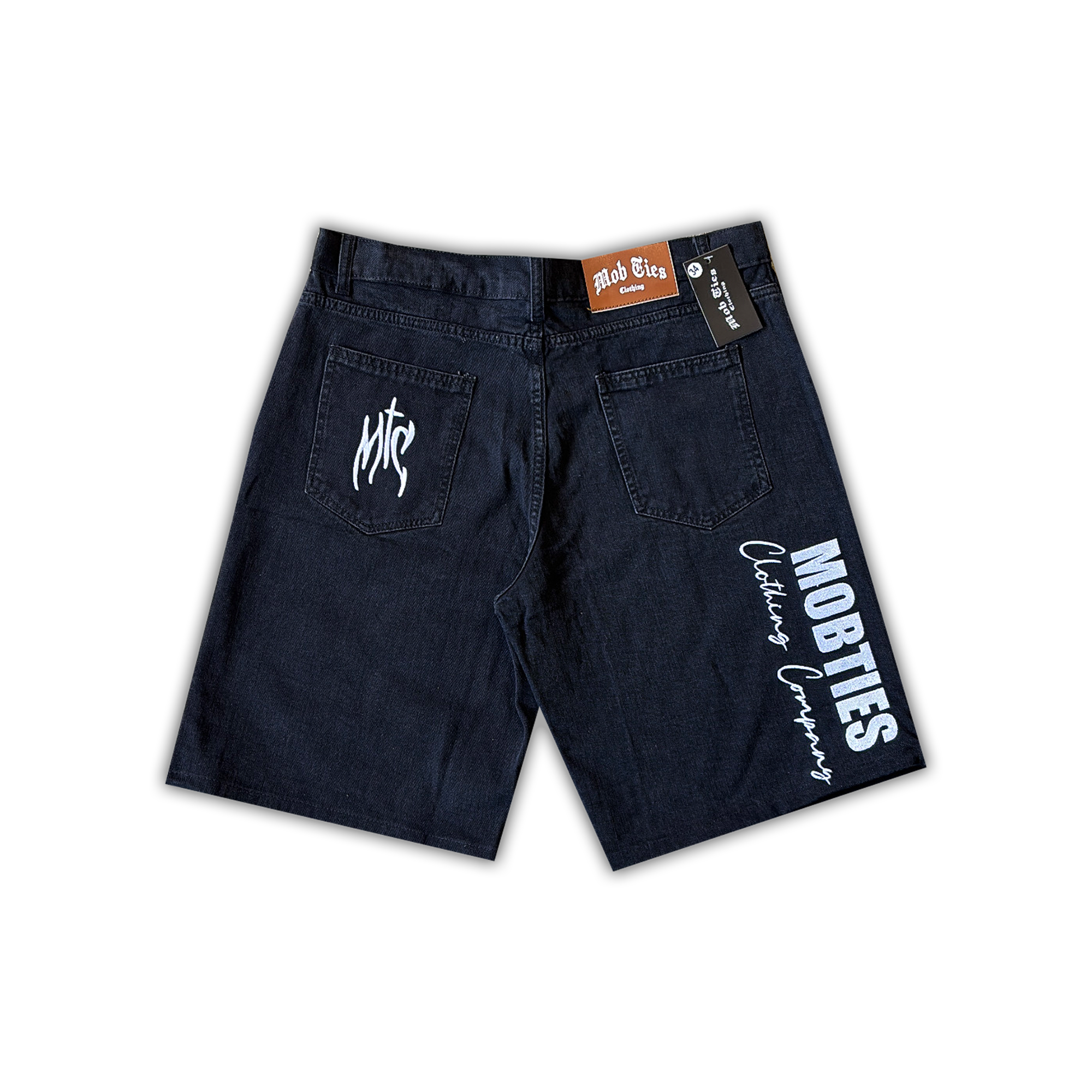Black wash denim, angelic details. These shorts bring art to the streets with full-color DTG cherub prints and a standout “Mob Ties Clothing” DTG logo across the front. Embroidered Initial logo + Mobties Clothing Company Logo on back.